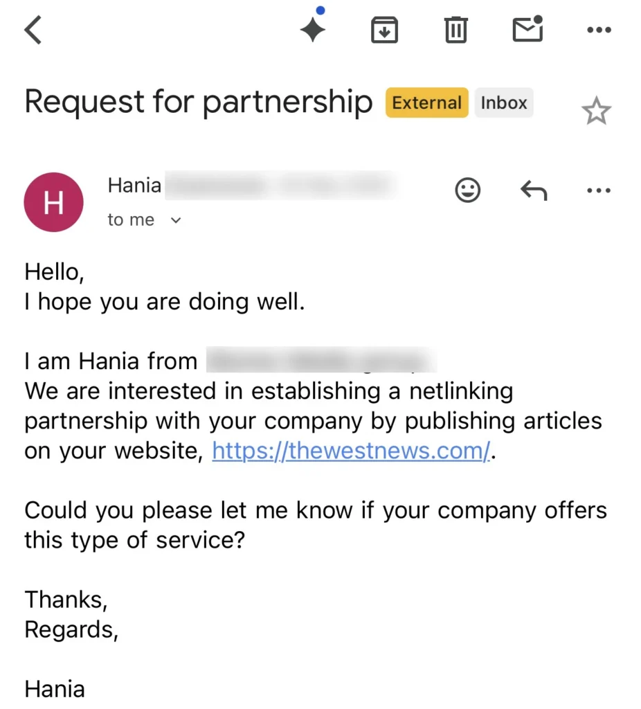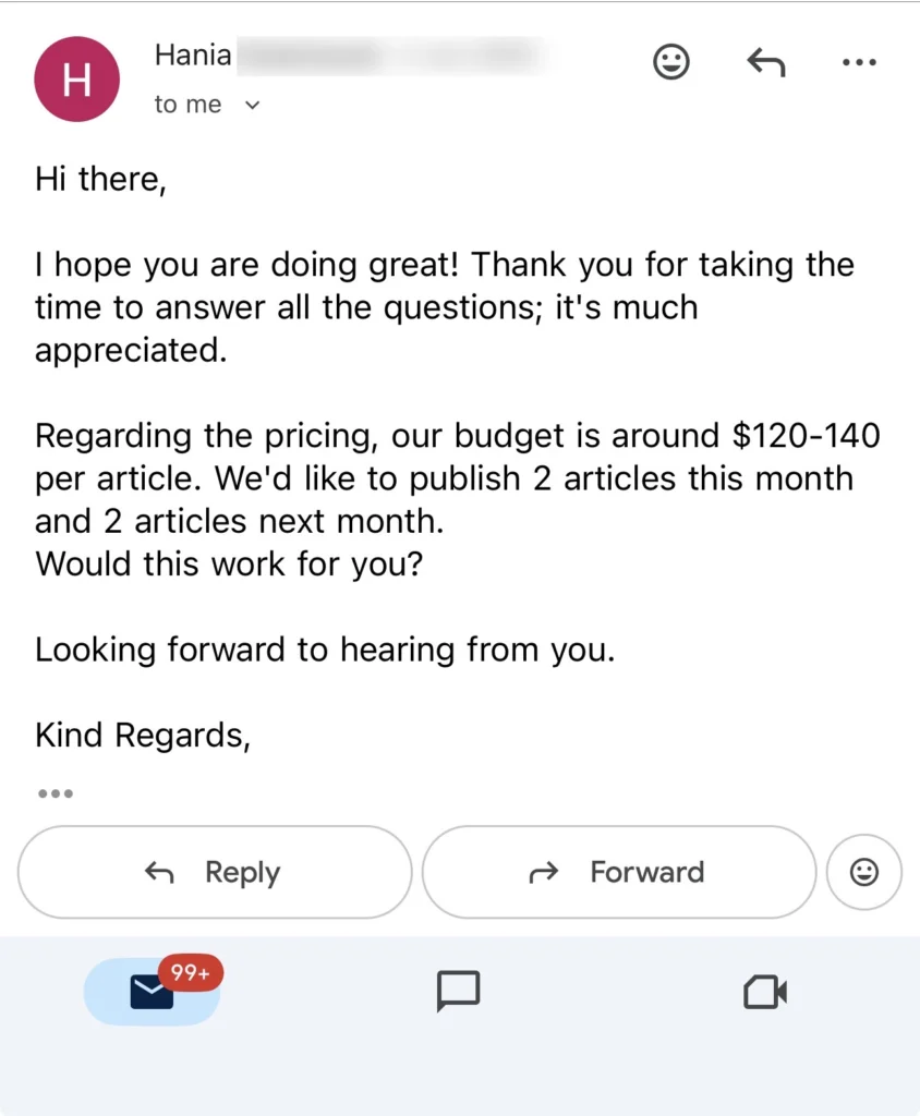 This is what an inbound email looks like. A recent email from an agency based in Europe.
